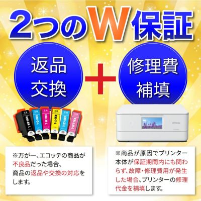 万が一トラブルが発生した際は、サポートスタッフまでご相談ください。また互換インクカートリッジには「ふたつの保証」を設けております。商品はご購入から1年以内、ご使用プリンタ―についてもプリンターご購入から1年以内であれば保証の適用が可能です。