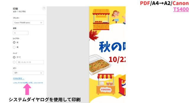 「システムダイアログを使用して印刷」をクリックします。