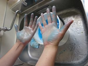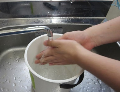 ②まずは手をごしごし水で洗います